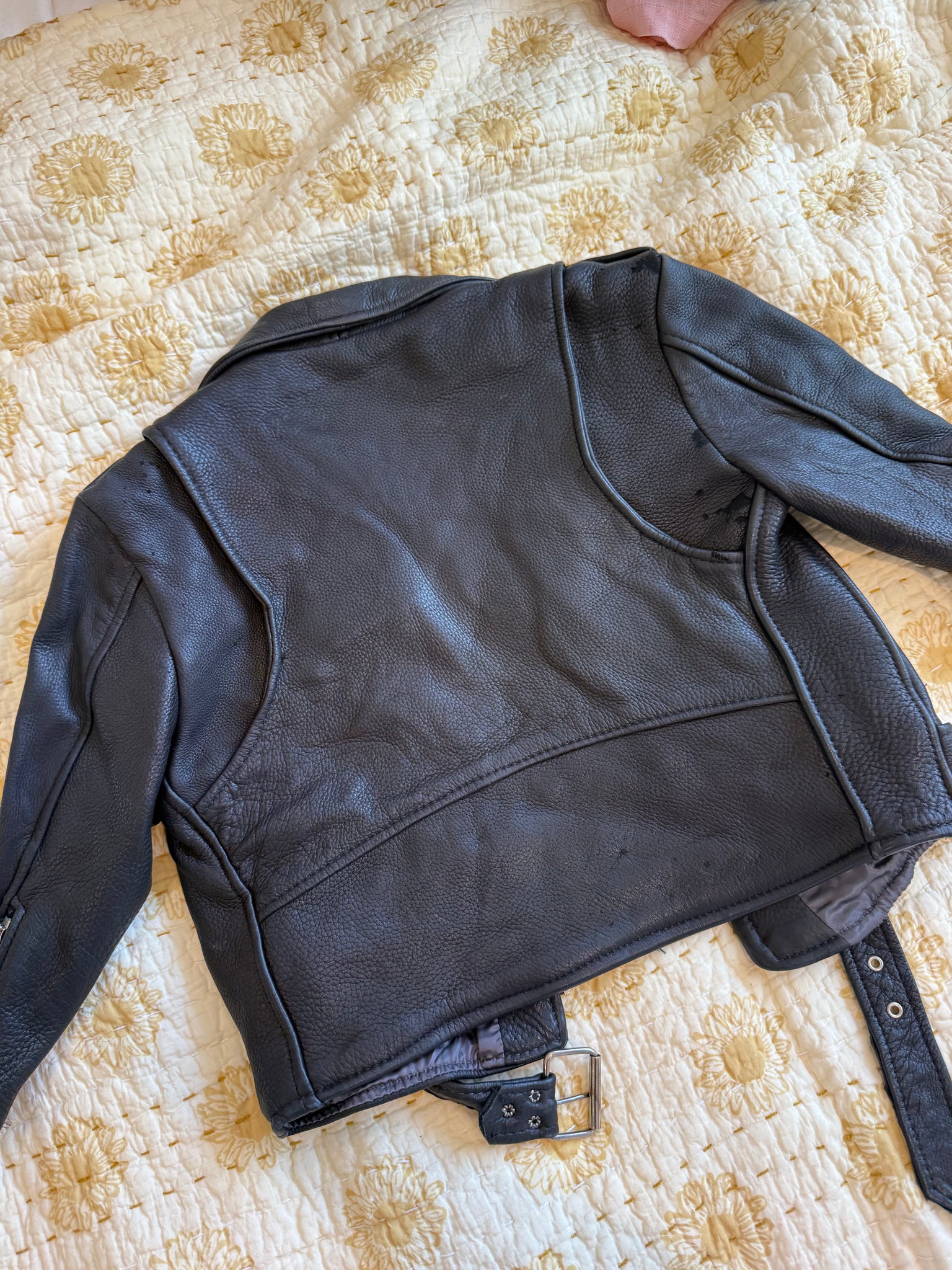 100% leather Moto Jacket , vintage but no flaws feels NEW! Leather leather new so amazing moto jacket 2-5