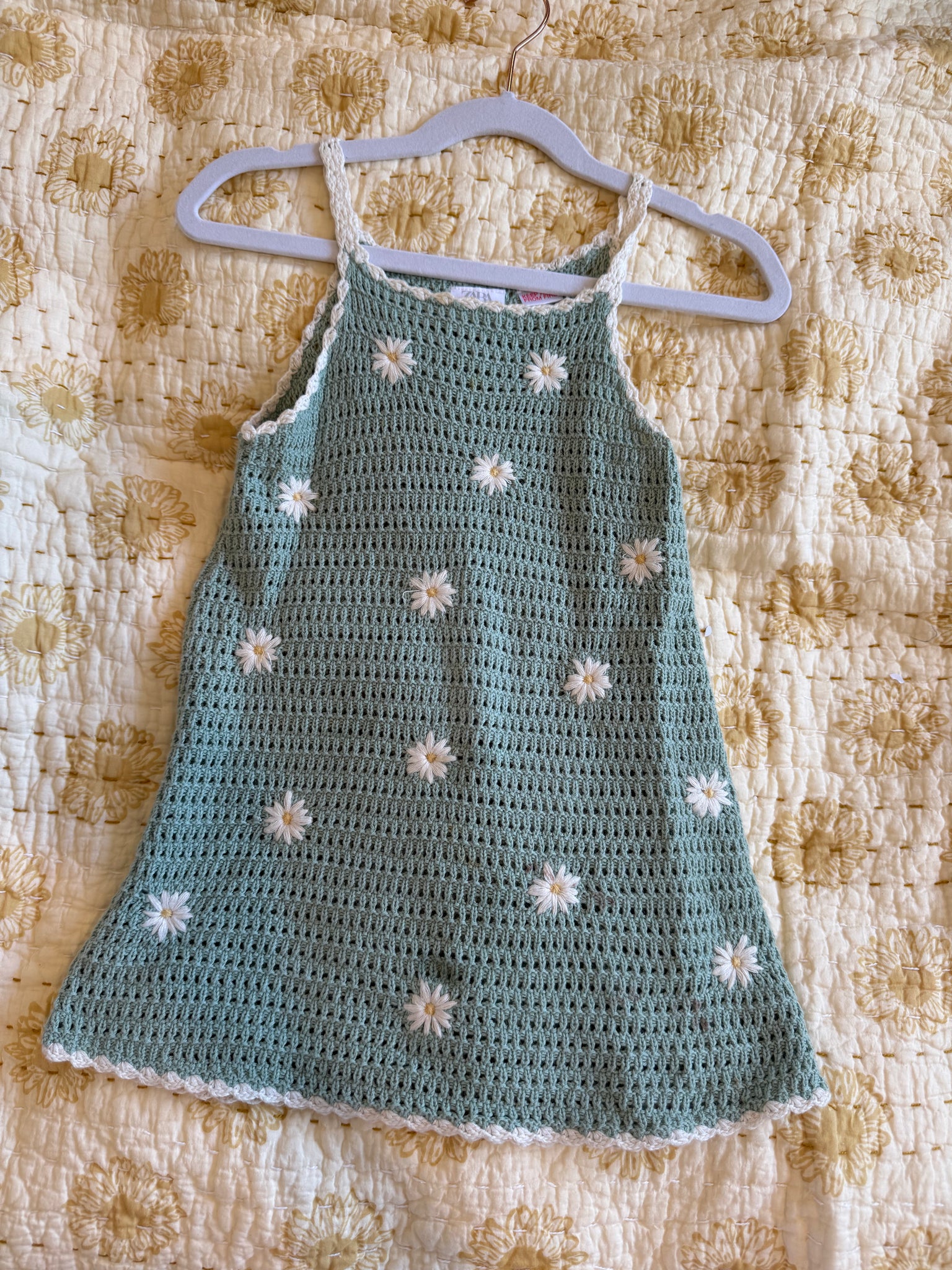 Crochet Dress , green with white daisys, zara, size 2-3, washed